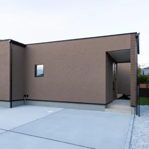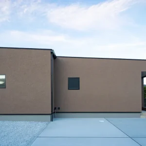 塗り壁のやさしさが広がる、コの字型パッシブデザインの平屋