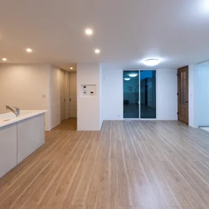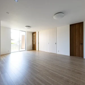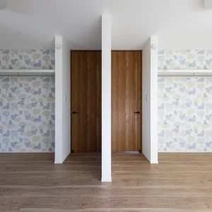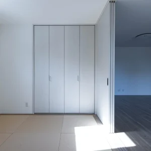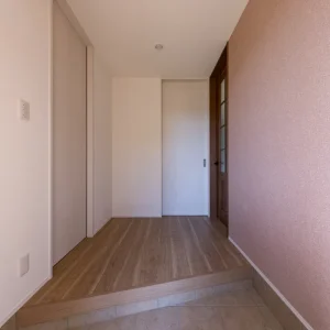 扉を開けると、やわらかな光が差し込む明るい玄関ホール。視線が奥へと抜ける設計により、入った瞬間から開放感を感じられる空間になっています。日中は自然光に包まれ、夜は間接照明のあたたかな光が落ち着きを与え、時間帯によって異なる表情を楽しめます。