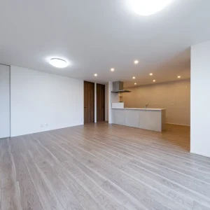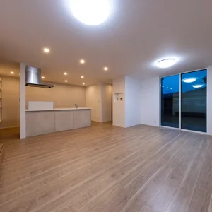 キッチンからLDK全体を見渡した夜の様子