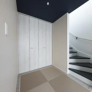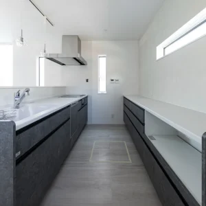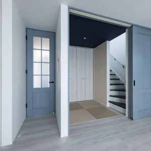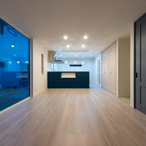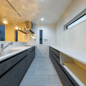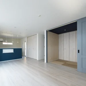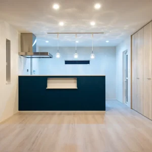 ブルーグレーがやさしく包む、カフェ風デザインの住まい be-plus, 二階建て, 家づくり 色合いとバランスが美しい外観 一歩外に出れば通りに並ぶ家々の中でも、ひときわ目を引く印象的な外観。 深みのあるブルーグレーの塗り壁に、縦のラインを強調するブラックのアクセントウォールを取り入れた洗練された印象とともに、どこか親しみやすい雰囲気も併せ持っています。シンプルでありながら存在感のある佇まいは、住む人の個性をさりげなく表現し、住まい全体のセンスの良さを静かに物語っているようです。 暮らしに寄り添う、カフェのようなキッチン空間 この住宅は、外観の美しさだけでなく、内部空間の設計にも細やかな配慮が施されています。 キッチンはリビング・ダイニングと程よくつながりながら、生活感をうまく隠せる絶妙な配置。ネイビーブルーのカウンターと白い天板とのコントラストが美しく、カフェのような洗練されたデザインが施されています。吊り下げ照明のガラスシェードが、空間に柔らかいリズムときらめきを添え、夜には家族の団欒にぬくもりを灯します。 仕切っても、つながっても心地いい和の空間 LDKと隣接する和室スペースは、引き戸で仕切れる仕様となっており、柔軟に使い分けができるのも魅力の一つ。天井にはシックなネイビーがあしらわれており、落ち着いた印象を演出しながらも、他の空間と緩やかに差別化されています。 未来まで続く、心地よい日常のかたち “家に帰るのが楽しみになる家”。 リビングで本を読んだり、和室でゴロンと昼寝をしたり、キッチンカウンターでお茶を飲みながらおしゃべりしたり。そんな「ちょっとした時間」が、かけがえのない日常として積み重なっていくような空間設計です。 心地よい光と空気に包まれ、家族の気配を常に感じながら、自分らしく穏やかに暮らせる住まい。 見た目の美しさはもちろん、日々の暮らしに寄り添う機能と工夫が、未来への豊かな生活を支えてくれます。 Post Share Line Pin it note be-plus, 二階建て, 家づくり 2階建て, カフェ風デザイン, 和室のある暮らし, 戸建て, 注文住宅 コメント: 0 自然の力で快適に暮らす、L字型パッシブデザインの家 コメント ( 0 ) トラックバックは利用できません。 この記事へのコメントはありません。 関連記事一覧 カーテンいらずで心地よく暮らす、コの字型パッシブデザイン... ヤスナグデザインホームの歌「ココロヨロコ美」 塗り壁のやさしさが広がる、コの字型パッシブデザインの平屋