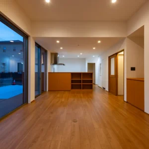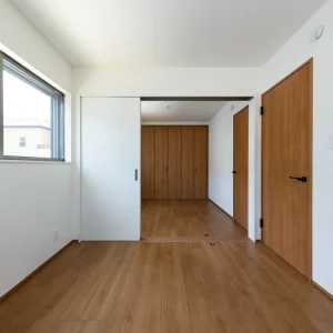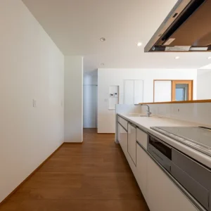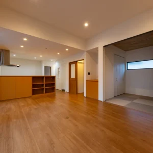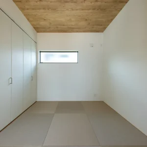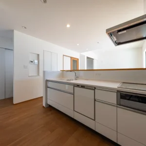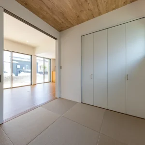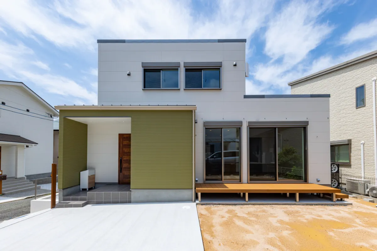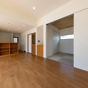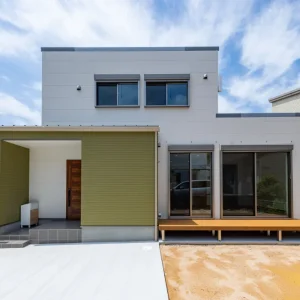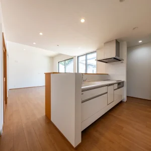 暮らしに寄り添う、家事動線の良いフレンチカントリーハウス 二階建て, 家づくり やさしさと上品さをまとう、理想のフレンチカントリースタイル 今回ご紹介するのは、ナチュラルな雰囲気の中に温かみと機能美が共存する一邸。 優しい色合いの外観と木のぬくもりを感じる内装、さらに毎日の家事がスムーズに行えるよう工夫された動線設計が魅力の住まいです。 外観は、ホワイトを基調としつつ、グリーンのアクセントウォールが印象的。シンプルな中にも柔らかさを感じさせる配色で、周囲の住宅街にも自然と溶け込むデザインに仕上げています。かわいらしさと上品さを併せ持った、まさに「フレンチカントリー」スタイルの理想形です。 一体感と心地よさが調和する居心地の良い空間 室内に足を踏み入れると、まず目に飛び込んでくるのは、明るい白壁が織りなすやさしい空間。 大きな窓から差し込む自然光が、時間とともに異なる表情を見せながら、住まい全体に穏やかな光を届けてくれます。 リビングとダイニングはひと続きの設計で、つながりのある広がりを感じさせるつくりに。家族の存在をそばに感じながら過ごせるこの間取りは、日々の忙しさの中でも自然と会話が生まれ、暮らしにあたたかな豊かさを添えてくれます。 毎日を快適にする、機能美あふれるキッチン キッチンは、機能性とデザイン性の両立を図った対面型レイアウトを採用。料理をしながら家族の様子が見渡せる配置は、日々のコミュニケーションを自然と育む工夫のひとつです。 さらに、ダイニングや水まわりへのアクセスもしやすい動線設計で、家事の効率をぐんと高めてくれるのも大きな魅力。忙しい毎日の中でも、無理なく快適に過ごせる工夫が詰まっています。 毎日使う場所だからこそ、使いやすさと美しさにこだわった、暮らしに寄り添うキッチンです。 現代のライフスタイルに溶け込むモダンな和空間 リビングに隣接した和室は、引き戸を開けることでリビングと一体に使うことができ、閉めれば来客用や個室スペースとして活用できます。畳はモダンな市松敷きで、伝統的な要素を保ちつつもスタイリッシュに仕上げられています。 天井には木目調のクロスを施し、空間全体に統一感と高級感をプラス。お昼寝や読書、お子さまの遊び場、急な来客の宿泊スペースなど、用途に応じた多彩な使い方ができる便利な一室です。 暮らしにやさしく寄り添う、理想のかたち 可愛らしさと使いやすさ、そして家族の暮らしやすさをしっかりと形にした住まいです。 忙しい毎日を少しでも快適に、そして家にいる時間をもっと豊かに過ごせるよう、動線や収納、空間設計に工夫を凝らしました。 ナチュラルで優しい印象のデザインを好まれる方や、実用性とデザイン性をどちらも大切にしたい方にとって、きっと理想に近い一邸となることでしょう。 Post Share Line Pin it note 二階建て, 家づくり 2階建て, フレンチカントリー, 和室のある暮らし, 家事動線の良い家, 戸建て, 注文住宅 コメント: 0 スキップフロアで広がる、シンプルモダンな平屋の暮らし アメリカンスタイルで暮らす、インディゴブルーの家 コメント ( 0 ) トラックバックは利用できません。 この記事へのコメントはありません。 関連記事一覧 スタイリッシュに暮らす、シンプルモダンスタイルの2階建て 吹き抜けとスキップフロアが魅力の、開放感あふれるこだわり... スケルトン階段と格子戸でおしゃれな家|苅田町工務店ヤスナ... 開放感とデザイン性を両立した、スケルトン階段のあるモダン... コンパクトながら収納充実な家 Lの字形・白いガルバ2階建ての家。 かっこいいツートン外壁にスキップフロア 洗練された美しさが光る、シンプルモダンな2階建ての家 苅田町オープンハウス1月25日(土)開催!! \防音部屋...