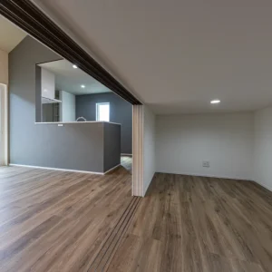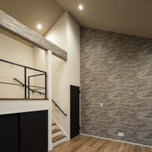 スキップフロアで広がる、シンプルモダンな平屋の暮らし 家づくり, 平屋 シャープな外観と暮らしやすさが融合した、平屋スタイルの住まい 今回ご紹介するのは、シンプルでありながらも立体感と遊び心を兼ね備えた、スキップフロア構成の平屋住宅です。モダンな外観と機能的な間取りを両立させ、ご家族のライフスタイルに寄り添った一邸に仕上がりました。 まず目を惹くのは、シャープな切妻屋根と水平ラインが美しい外観です。目隠し効果とデザイン性を兼ねた張り出しのボリュームが、建物全体に奥行きを与え、通りからの視線を程よく遮る役割も果たしています。控えめながらも個性を感じさせるこの外観デザインは、周囲の住宅地と調和しつつも、ひときわ洗練された印象を与える佇まいとなっています。 立体的な工夫が広がりを生む、開放感あふれるリビング 室内に入ると、まず広がるのは天井高を活かした開放的なリビング空間。天井まで届くアクセントクロスと大きな掃き出し窓から注がれる自然光が、空間をより豊かに演出します。 そしてこの住まいの最大の特徴ともいえるのが「スキップフロア」です。 リビングの一部を一段上げた空間にすることで、限られた平屋の構成の中にも立体感と変化を持たせました。下部には大型の収納スペースを設け、家全体の収納力も大幅にアップ。用途に合わせて使い分けできる多層構造が、ご家族の暮らしにフィットした設計です。 家族の気配を感じながら、快適に使えるキッチンスペース キッチンは対面式のセミオープンスタイル。グレーの壁面にホワイトのカウンターが映え、洗練された印象を与えています。 キッチンからはリビングやスキップフロアを一望でき、料理をしながら会話を楽しんだり、家族の動きに目が届きやすく、日々の安心感にもつながります。動線も無駄がなく、ダイニングや水まわりへのアクセスもスムーズ。家事効率を高めつつ、自然と家族とのふれあいが生まれる、暮らしに寄り添った設計です。 快適さとつながりを大切にした、心満たされる住まい このお住まいは、家族の絆を育みながら、それぞれの時間も大切にできる空間を目指してつくられました。見た目のかっこよさだけでなく、暮らしやすさ・快適性・機能性をしっかりと備えた一邸です。平屋という選択肢に、空間の高低差を活かした「スキップフロア」を取り入れることで、ただ広いだけではない“奥行きのある暮らし”が実現しました。シンプルで無駄のないデザインの中に、家族のライフスタイルに寄り添う工夫が随所に詰まっています。 心まで満たされるような、そんな住まいをお求めの方にこそ、ぜひご覧いただきたい一邸です。 Post Share Line Pin it note 家づくり, 平屋 ココロカラ―, シンプルモダン, スキップフロア, 家事動線の良い家, 平屋, 戸建て, 注文住宅 コメント: 0 畳スペースとウッドデッキがつなぐ、ゆとりある平屋の暮らし 暮らしに寄り添う、家事動線の良いフレンチカントリーハウス コメント ( 0 ) トラックバックは利用できません。 この記事へのコメントはありません。 関連記事一覧 かっこいいツートン外壁にスキップフロア 2024住宅省エネに補助金【最大100万円】!?(条件付... 北九州市小倉南区で行われた地鎮祭の様子 ヤスナグデザインホーム|第2回感謝祭ご予約ページ 地鎮祭の様子 スケルトン階段と格子戸でおしゃれな家|苅田町工務店ヤスナ... H様邸地鎮祭の様子 共に創る 静かにこだわりを秘めるコの字形の2階建て 苅田町【神幸祭】にヤスナグデザインホーム出店しました!!