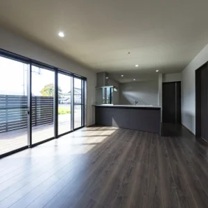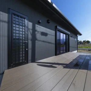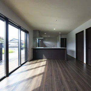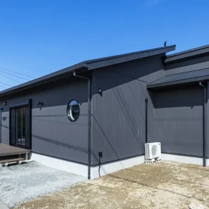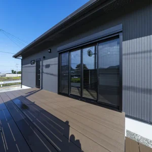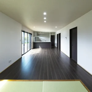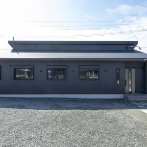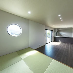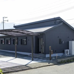 畳スペースとウッドデッキがつなぐ、ゆとりある平屋の暮らし 家づくり, 平屋 端正なシルエットが美しい、モダンな平屋住宅 のどかな景色が広がる穏やかな住宅地に、落ち着いた佇まいの平屋が誕生しました。周囲の風景になじみながらも、どこか凛とした存在感を放つ外観デザインが印象的です。 外壁にはダークトーンのカラーを採用し、重厚感とモダンさを両立。直線的な片流れ屋根が、全体のシルエットをすっきりと引き締めています。窓の配置や玄関まわりの構成もシンプルかつ機能的で、飽きのこないスマートな佇まいに仕上げられました。 さらに、大きめのカーポートも設置されており、雨天時の乗り降りや荷物の積み下ろしもスムーズ。日々の使い勝手や将来のライフスタイルの変化にも柔軟に対応できる、実用性と美しさを兼ね備えた住まいです。 心地よい光と空気が広がる、家族の中心空間 室内に入ると、開放感あふれるLDKが目の前に広がります。大きな掃き出し窓からたっぷりと光が差し込むこの空間は、明るさと温かさに包まれた家族団らんの中心。 フローリングには重厚感のあるダークブラウンの木目調を採用。キッチンのカラーと美しく調和し、空間に落ち着きと洗練された雰囲気を与えています。 片付けやすく使いやすい、工夫が光るキッチン設計 キッチンはオープンスタイルで、リビングや畳スペースと緩やかにつながっています。 回遊性も確保されており、生活動線もスムーズです。収納スペースも充実しており、日々の生活の中で「片付けやすさ」と「使いやすさ」を両立しています。 暮らしにやさしく寄り添う、小さな和のくつろぎ この住まいの大きな特徴のひとつが、リビングに隣接した小上がりの畳スペース。段差があることで空間にメリハリが生まれ、リビングの一角に程よくくつろげる和の空間を演出しています。 円形の窓から差し込むやわらかな光が、畳の表情をより美しく引き立ててくれるのも魅力のひとつ。お子さまのお昼寝や、ちょっと腰を下ろしてくつろぐ場として、家族の暮らしに自然に溶け込んでいます。 外と中が心地よくつながる、家族の憩いの場所 LDKの大開口窓の外には広々としたウッドデッキが広がります。屋外と室内をつなぐこの空間は、第二のリビングとしても活用可能。 天気の良い日はチェアを出して日向ぼっこをしたり、家族や友人とBBQを楽しんだりと、暮らしの幅をぐんと広げてくれます。外からの目線が気になりにくいよう、フェンスも設けられており、プライベートな時間を大切にしたい方にもぴったりです。 「家族の時間」が育まれる、心地よさに包まれた平屋 今回ご紹介した住まいは、見た目の美しさと暮らしやすさ、そして家族との心地よい距離感を兼ね備えた、バランスの取れた一棟です。リビングで過ごす穏やかな時間、小上がりの畳スペースでひと息つく瞬間、ウッドデッキで感じる季節の移ろい。それぞれの場所が、家族の日常にやさしく寄り添い、思い出を重ねていく舞台になります。 「平屋ならではの一体感がほしい」「自然とつながる暮らしに憧れる」「機能的で片付けやすい家に住みたい」──そんな想いに応える住まいがここにはあります。 Post Share Line Pin it note 家づくり, 平屋 ウッドデッキ, シンプルモダン, 和室のある暮らし, 平屋, 戸建て, 開放感のある住まい コメント: 0 塗り壁のやさしさが広がる、コの字型パッシブデザインの平屋 コメント ( 0 ) トラックバックは利用できません。 この記事へのコメントはありません。 関連記事一覧 なぜ今 平屋がブーム? 白いL字形パッシブデザインの家|動画 苅田町オープンハウス1月25日(土)開催!! \防音部屋... Lの字形・白いガルバ2階建ての家。 ヤスナグデザインホームの歌「ココロヨロコ美」 居心地の良い家づくりをモットーに コの字(Cの字)形平屋|みやこ町パッシブデザイン・中庭の... 塗り壁のやさしさが広がる、コの字型パッシブデザインの平屋 コンパクトながら収納充実な家