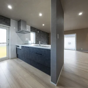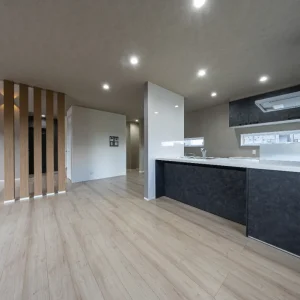 キッチンからリビング・ダイニングまで見渡せる開放的な空間。家族の様子を感じながら料理ができる、つながりのある間取りです。