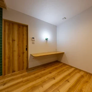 また、木目の美しいドアや床材が、住まい全体のナチュラルな雰囲気と心地よく調和。外から帰ってきた瞬間に、ほっと気持ちがほどけるような、広がりを感じられる玄関空間が実現しました。