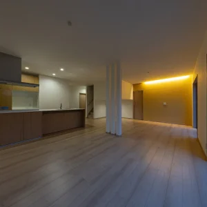 夜には、間接照明のやわらかな光が空間を包み込み、昼とは異なる落ち着いた表情に。広さだけでなく、光の使い方にも配慮することで、くつろぎと心地よさをより深めています。