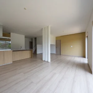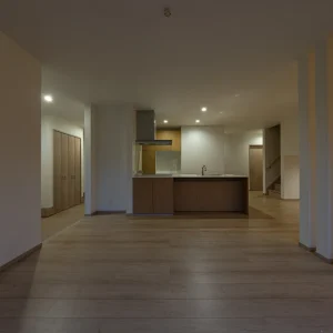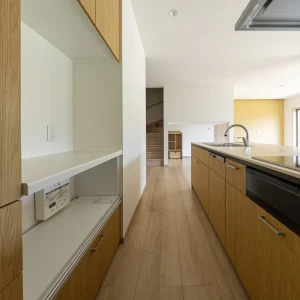 リビングは、視線を遮るものをできるだけ抑え、空間そのものの広がりを感じられる設計に。大きな掃き出し窓からたっぷりと自然光が差し込み、昼間は照明に頼らなくても明るく、開放的な時間が流れます。外とのつながりを意識した開口部が、室内にいながら季節の移ろいや時間帯の変化を感じさせてくれます。