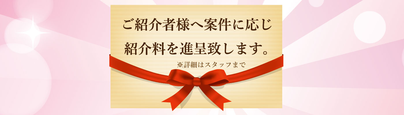 また、ご紹介頂けました方に、ご紹介料を進呈致します。金額やお支払い方法については、スタッフへお尋ねください。